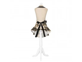 A barra é toda franzida, vem com um lacinho tipo broche, removível, que pode ser colocado em qualquer parte do Avental.