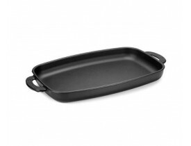 A Frigideira de Ferro Fundido Estriada com Cabo de Madeira - Santana com o fundo todo estriado o alimento se utiliza pouquíssimo óleo. As laterais altas diminuem os respingos no fogão. Cantos arredondados facilitam a limpeza.